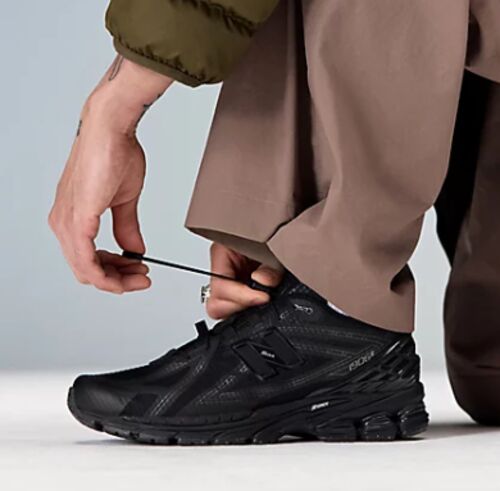 NB996ゴアテックス新色オールブラック。鉄板の組み合わせのはずが、実物は合皮スエードの質感が安っぽく22,000円は正直厳しい。同シリーズの他色や2002Rなど天然革モデルと比べると差は歴然。素材選びの迷走が惜しい一足。
